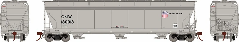 Our 3-bay car represents the common 4600 cu.ft. capacity version. The railroads looking to replace their aging 40′ box cars in grain service needed a modern hopper design – one that could operate within the tighter Plate B clearances for light branchline and industrial service. ACF’s design won them many contracts from a plethora of railroads. One can find these cars still in revenue service today in grain trains and other similar service.