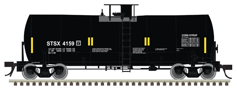 The 17,600 Gallon Corn Syrup Tank Car was built in large numbers by Trinity Industries between 1984 and 1998. They are commonly used in the transport of corn syrup, liquid sugar and molasses from processing facilities to bulk distribution centers. Over 7,000 cars were built and most remain in active service today.