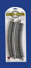 22″ radius curved track is best used to make relatively wide railroad curves. This track accommodates longer locomotives and rolling stock, and permits mainline operation at higher speeds. It can be placed on the outside of 18″ radius curved E-Z Track for double-track mainline realism.