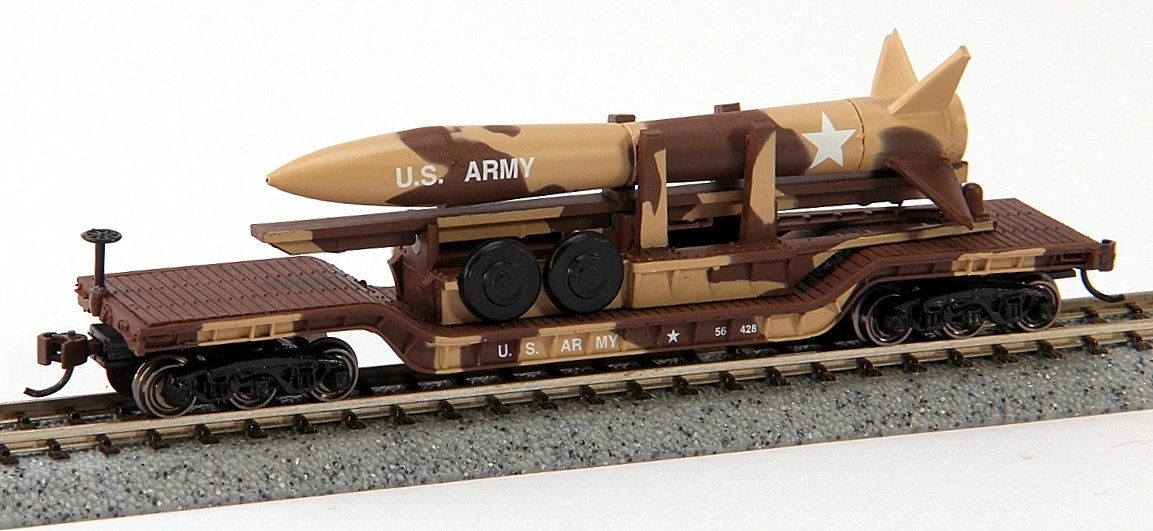 Bachmann Silver Series N 71397 52′ Center Depressed Flat Car With Missile Load, US Army #56428 (Desert-Tan Camouflage)