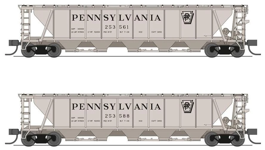There were four PRR paint and lettering schemes on this car. First was the Circle Keystone (CK) as delivered in Freight Car Color (FCC) with white lettering. Second, some shopped cars received the gray body color with the CK scheme in black. Third, some had the Shadow Keystone (SK) with gray body color with black lettering. And lastly, the Plain Keystone (PK) scheme with gray body color with black lettering was also used. In addition to the PRR schemes, they were also painted in both Penn Central (gray and green) and Conrail (gray and red) schemes.