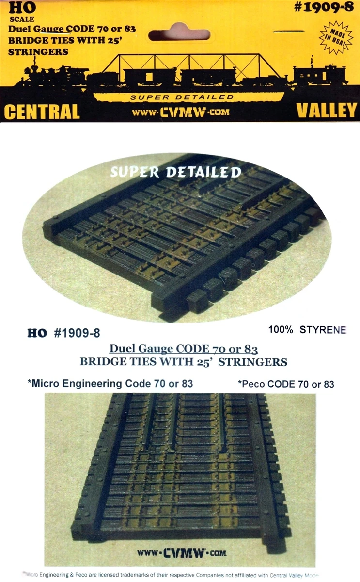 Central Valley Model Works HO 1909-8 Code 70/83 Bridge Ties With 25′ Stringers