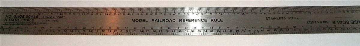 The 12″ stainless steel with black calibrations ruler is made of stainless steel with etched scales in N, HO, S and O along with a table to covert drill sizes to decimal equivalent.