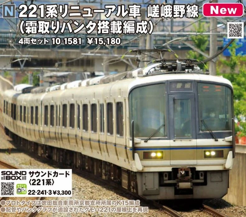 Be the first to review “Kato N 101581 221 Series Renewed Car Sagano Line (Anti-Frost Pantograph) 4-Car Set” Cancel reply