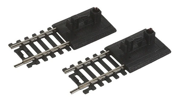 Perfect for layouts and for adding onto train sets, Life-Like HO Scale Code 100 Lighted Bumpers feature standard-profile easy-maintenance Code 100 nickel-silver rail, molded black plastic ties with realistic wood grain, joiners and holes to accommodate track nails. The pair of bumpers each have a built-in incandescent red bulb – perfect for low-light portions of your layout. The lighted bumpers are compatible with popular Code 100 track systems from most manufacturers.
