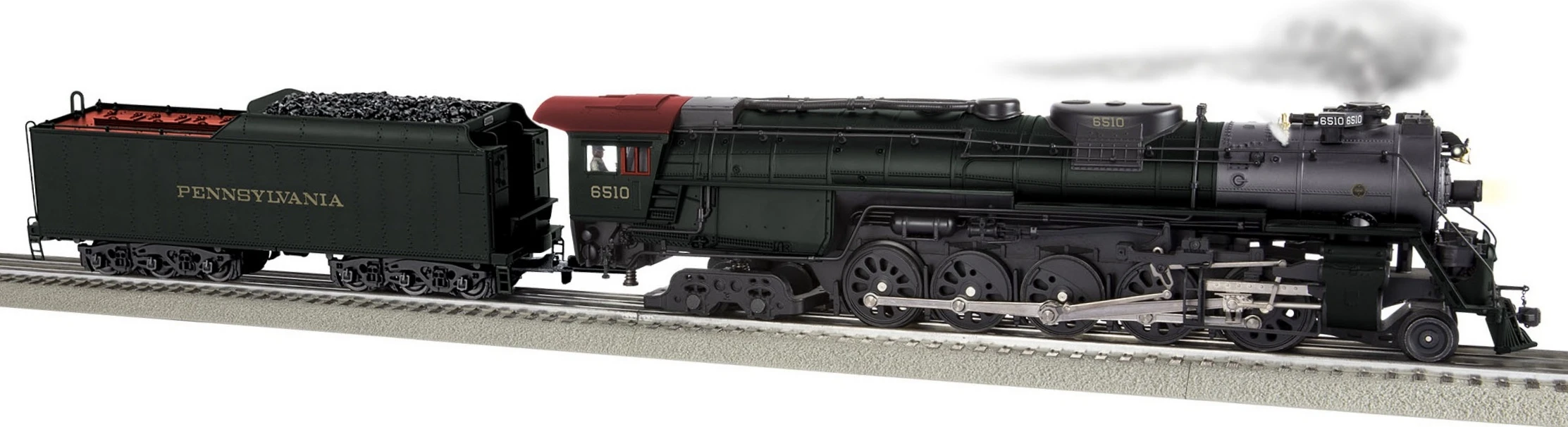The Santa Fe’s mighty 5011-class 2-10-4s will make an imposing sight on any railroad. Delivered in 1944, these 25 locomotives were among the last new Santa Fe steam power. Capable of moving heavy tonnage at high speeds, these brutes were right at home on freight trains all across the vast AT&SF system. In 1956 the Pennsylvania leased 12 locomotives, including No. 5022, for service hauling coal from Columbus to Sandusky, Ohio alongside the Pennsylvania’s J1 class 2-10-4s. We’ve presented a “what-if” Pennsylvania paint scheme here – exploring the possibility that the Pennsy decided to hang on to them a little longer. Also included in this release are two deco schemes based on the Kansas City Southern’s similar locomotives. Available with LEGACY and Bluetooth control, these models have also been upgraded with Whistle Steam, 3 interchangeable stacks, and all of the other enhancements of Lionel electronics including a wireless drawbar and track IR. Don’t miss this opportunity to add some of the biggest and best of the Santa Fe’s super steam fleet to your operation.
