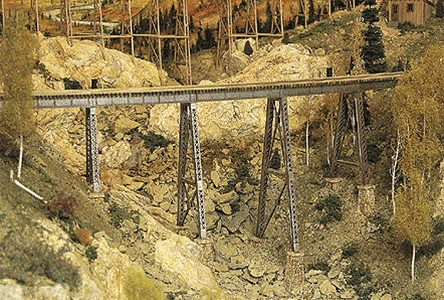 Tall steel viaducts are some of the most spectacular and interesting types of bridges. They are used by railroads to span wide and/or steep valleys, often replacing wooden trestles. HOn3 Tall Steel Viaducts are available in three base kits, three length extension kits, a height extension kit which adds a 4th and 5th story, and a tower kit. The various kits allow you to design and build your own custom bridge of any length from one to five stories high, with full towers or bents, and straight or curved. A 10-page instruction sheet with over 35 photos and illustrations is included. These bridges are beautifully detailed and are often the centerpiece structure on modeler’s layouts.