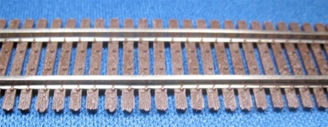 Non weathered track has a natural brown tie color and nickel-silver rail in 3′ lengths.