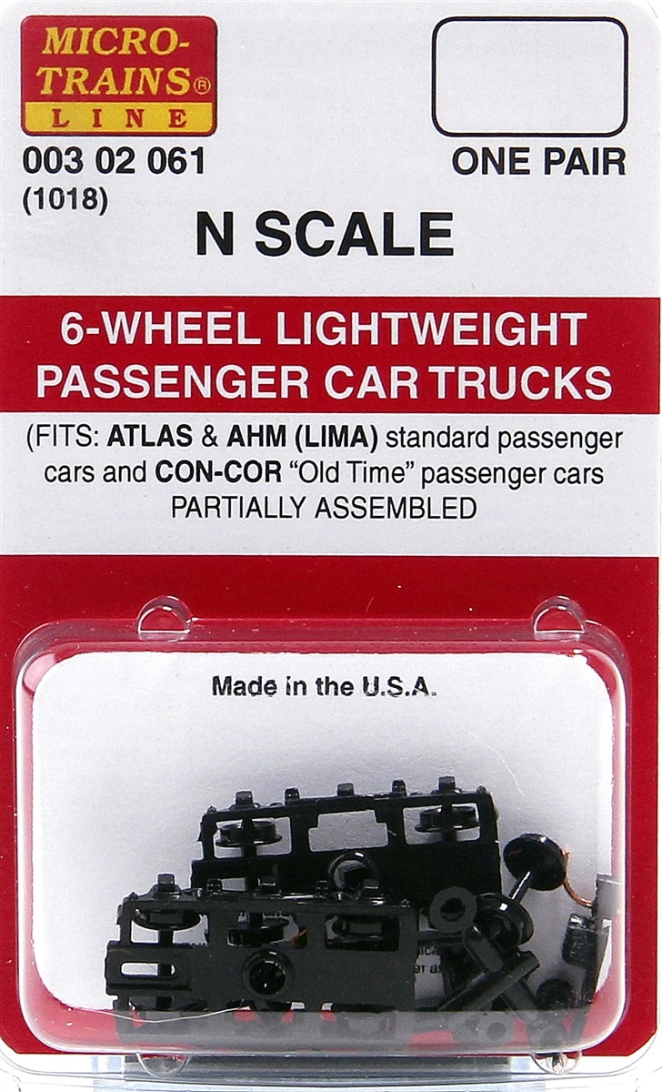 Micro-Trains N 00302061 (1018) 6-Wheel Lightweight Passenger Car Trucks (1 Pair, Partially Assembled)