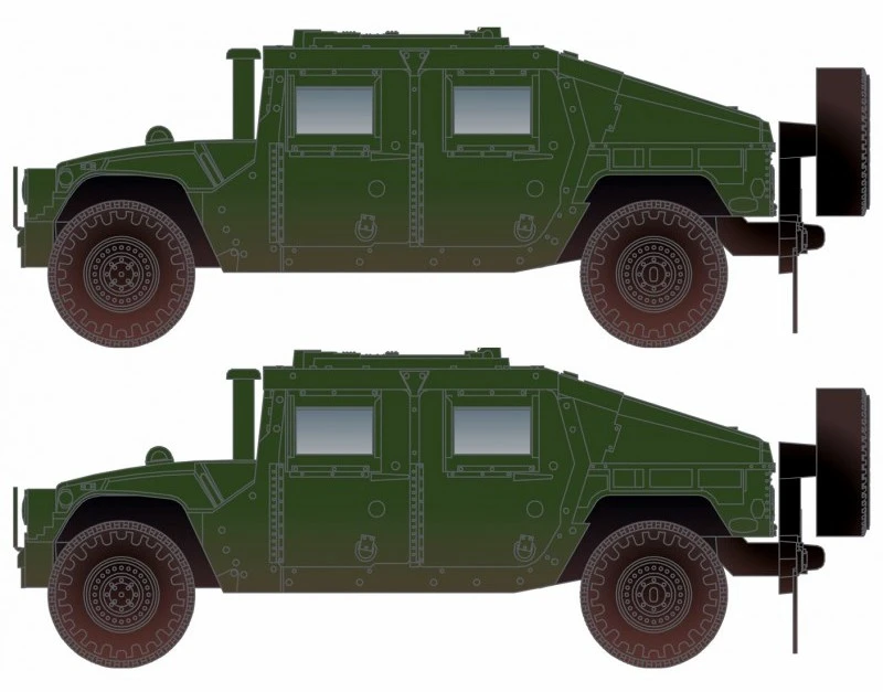 The interior window, shell, and underframe will be assembled together, however the extra wheel, snorkel, and etched-metal pieces will not come installed. The etched-metal pieces will be painted the same color as the vehicle.