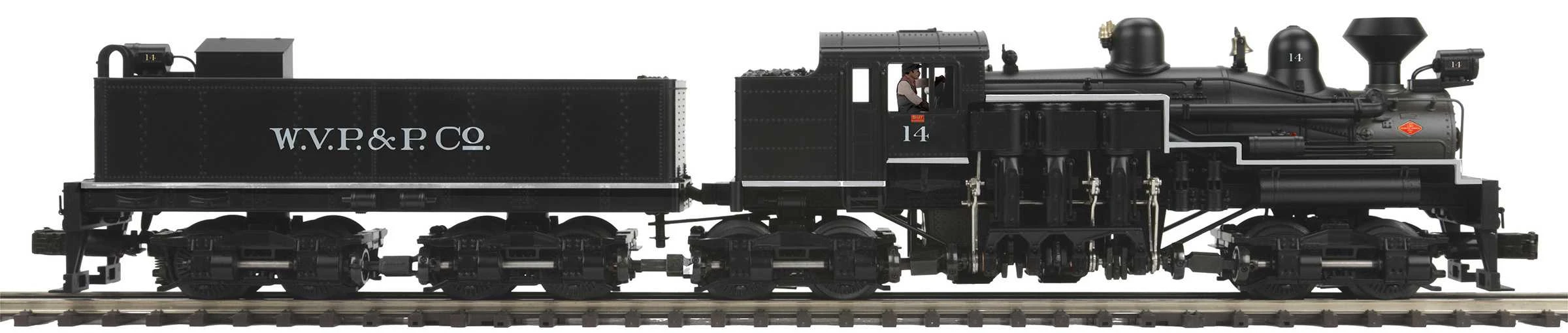 Shay reasoned – correctly, as it turned out – that laying rails through the woods would allow him to supply his mill year-round and undercut his competitors’ lumber prices. Horses, Shay’s original motive power, proved problematic as they tended to get run over by log cars on downgrades. Shay experimented with a small steam engine but the pounding of the side rods was too much for his light temporary track. The lightbulb moment came when he noticed that his flatcars, however, were not tough on the track, and he decided to power a flatcar with a steam engine and a belt drive to one axle. It was several years later in 1880 that machinist John Carnes at the Lima Machine Works, while modifying a locomotive for Ephraim Shay, came up with the idea of powering all trucks with a drive shaft and beveled gears. Within a few decades, the re-named Lima Locomotive Works was one of America’s Big Three steam locomotive builders.