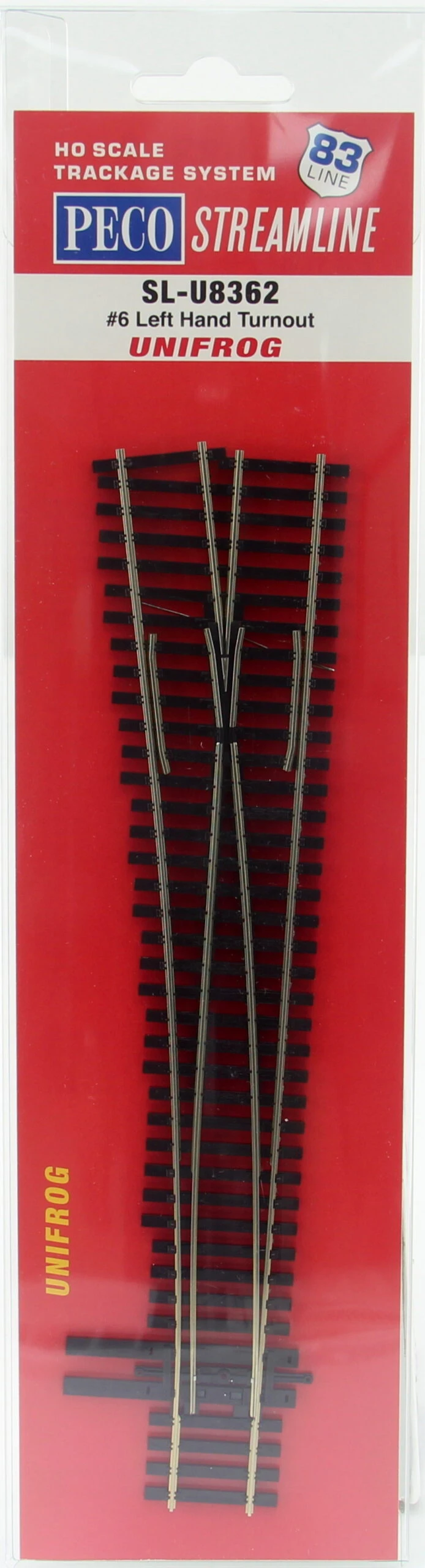 Peco HO SLU8362 North American-Style Code 83 Unifrog #6 Left Hand Turnout