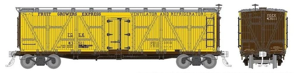 Like the X23s, the R7 reefers went through various improvements over time, including 2D-F8 cast trucks replacing the original arch-bar trucks, KD-Brakes being upgraded with AB-brakes, and the lap-seam roof being replaced with a Hutchins Dry-Lading roof. From 1940 to 1942, over 250 R7 reefers were transferred to FGE subsidiary National Car Company (NX) for use in hauling meat products. During the early 1950s, a small batch of R7 reefers was leased by National to the Mathieson Chemical Company for use in a dedicated dry ice hauling service. The R7 reefers lasted in regular service until the late 1950s.