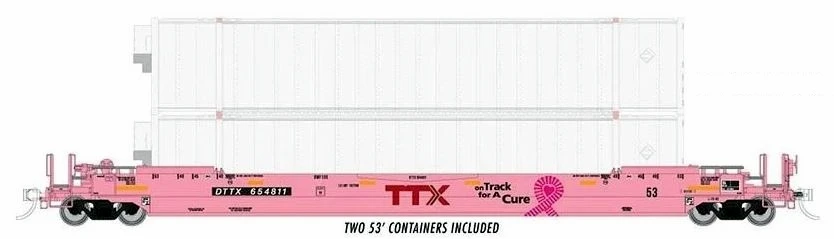 Rapido HO 401054 53′ Husky-Stack Well Car With Containers, TTX “On Track For A Cure” #475412
