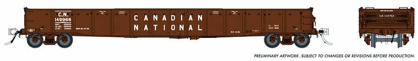 This 52′ 6″ mill gon was produced starting in 1943 and continuing through the 1950s for several Canadian railroads.