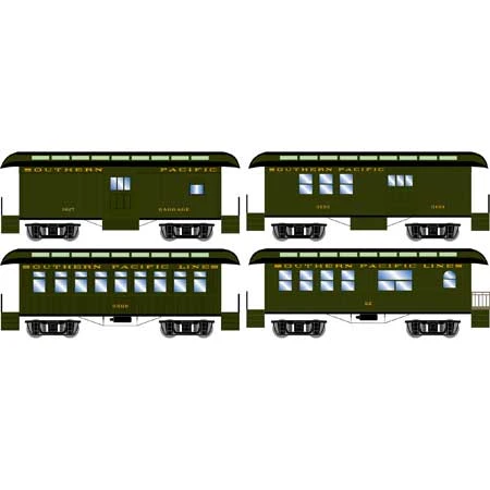Roundhouse HO 16378 34′ Old Time Overton Passenger Cars, Southern Pacific (4-Pack)