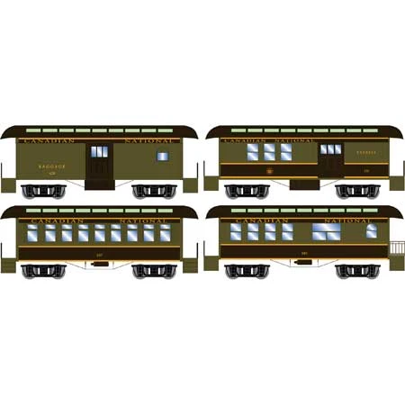 Roundhouse HO 16380 34′ Old Time Overton Passenger Cars, Canadian National (4-Pack)