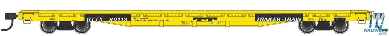 Walthers Mainline HO 910-5347 60′ PS Flat Car, Trailer Train (OTTX Farm Machinery Service) #90126 (Yellow)
