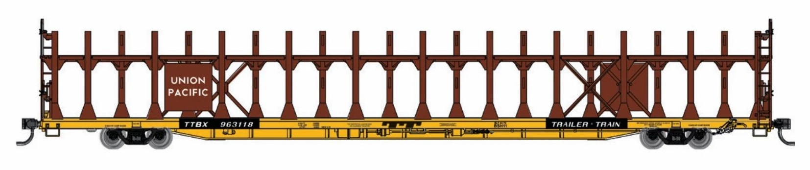 Walthers Mainline HO 910-8025 89′ Flat Car With Bi-Level Open Auto Rack, Union Pacific/Trailer Train #963118